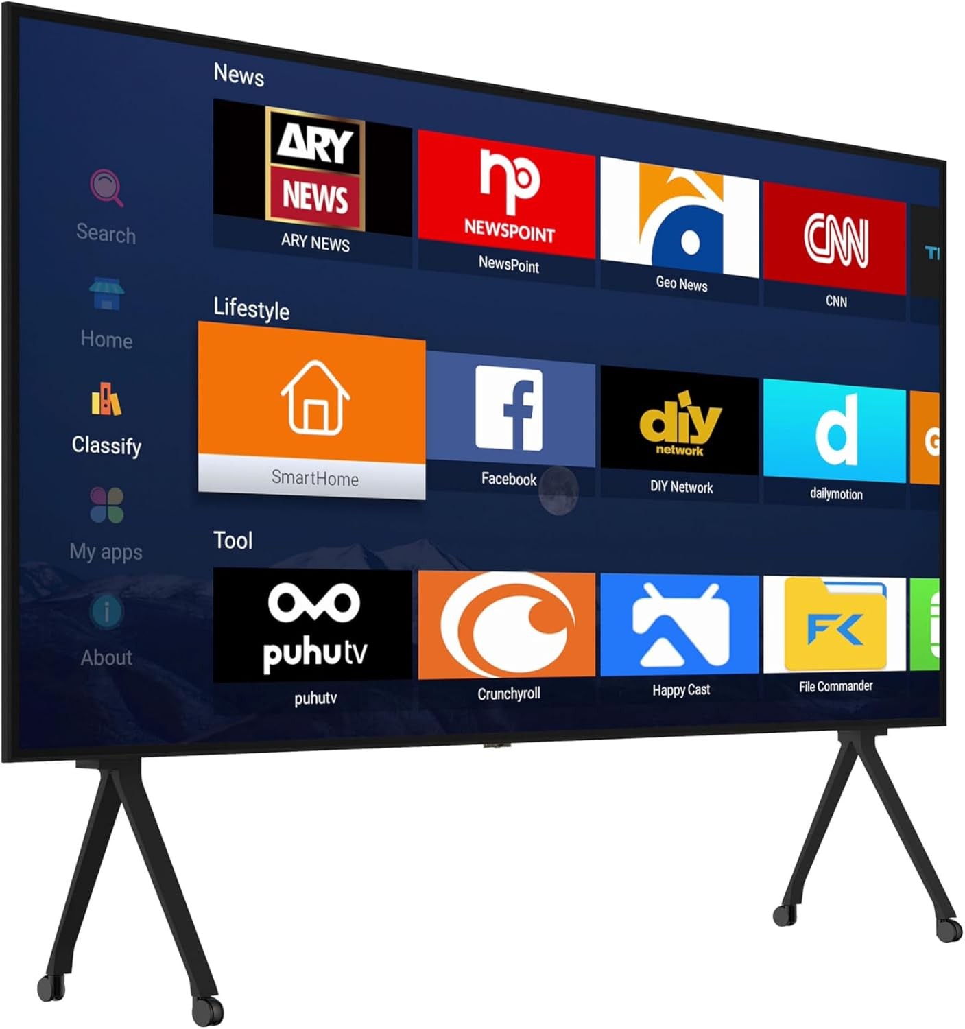 110 Inch UHD LED Smart TV, 4K Screen Television with Mount & Stand TS110TV High Resolution LCD Screen 16:9 Indoor Cinema with Anti-Glass WiFi, HDMI, USB Ports