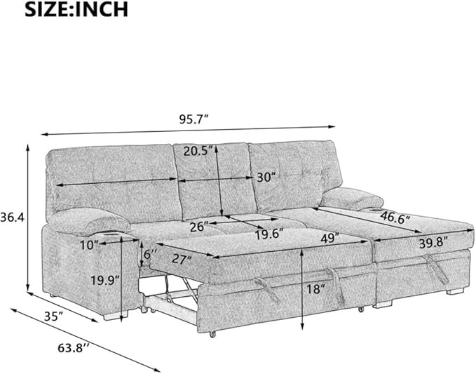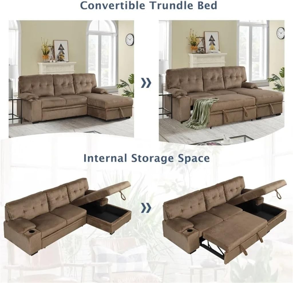 95.7" Padded Upholstered Sofa Bed Sleeper Sectional Sofa with Storage Chaise and Cup Holder for Living Room Furniture Set(D)
