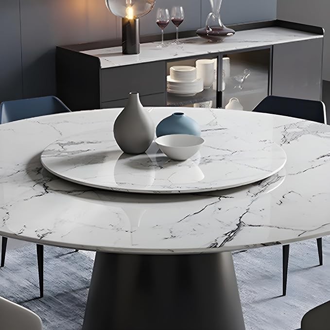 LITFAD Round Dining Table Set with Slate Table Top Modern Rotating Restaurant Table and Chairs for 10, Furniture Sintered Stone Dining Table with Lazy Susan for Home - 11 Piece Set Table & 10 Chairs